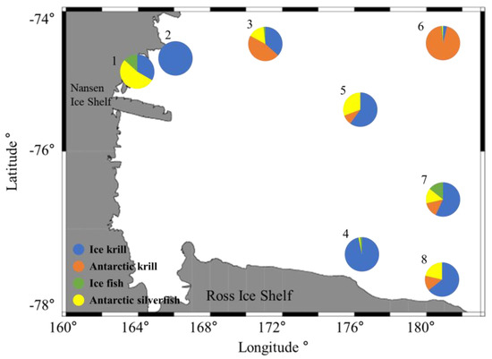 Antarctic silverfish (Pleuragramma antarcticum) is an important fish species in the Antarctic Ross Sea owing to its wide distribution and high abundance, serving as prey for both marine mammals and birds [1]. It also plays an important role in the food chain of the Ross Sea by feeding on Antarctic krill (Euphausia superba), linking top predators to krill [2,3,4]. Therefore, Antarctic silverfish have a significant impact on the abundance of top predators and krill in the Antarctic.