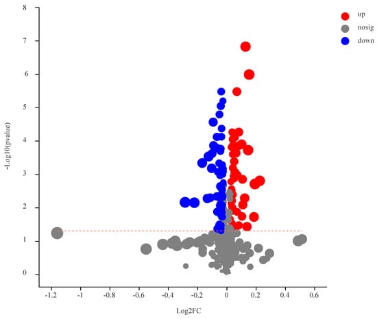 Based on the thresholds of VIP > 1 and p < 0.05 (Student’s t-test), compared with the G0 group, a total of 125 DEMs, including 53 significantly upregulated and