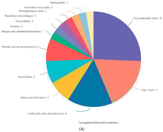 Analysis of upregulated (A) and downregulated (B) differentially expressed metabolites.