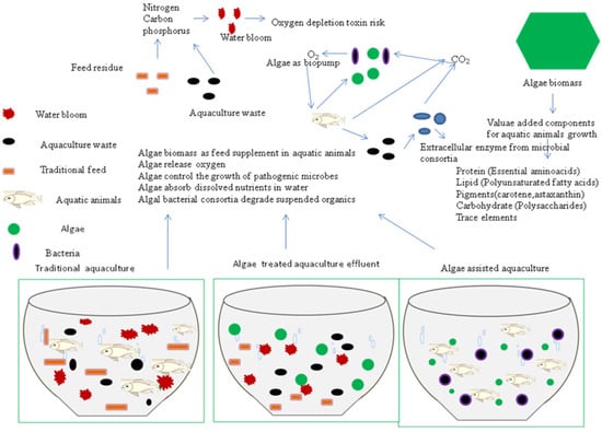 - Yang, L.; Wang, R.; Lu, Q.; Liu, H. “Algae aquaculture” integrating algae-culture with aquaculture for sustainable development. J. Clean. Prod. 2020, 244, 118765. [Google Scholar] [CrossRef]