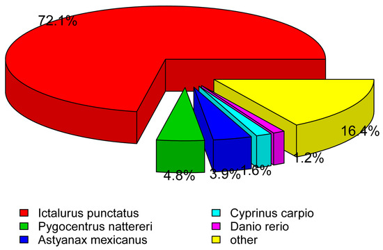 - Liu, Q.N.; Tang, Y.Y.; Zhou, M.J.; Luo, S.; Li, Y.T.; Wang, G.; Zhang, D.Z.; Yang, H.; Tang, B.P.; He, W.F. Differentially expressed genes involved in immune pathways from yellowhead catfish (Tachysurus fulvidraco) after poly (I:C) challenge. Int. J. Biol. Macromol. 2021, 183, 340–345. [Google Scholar] [CrossRef]