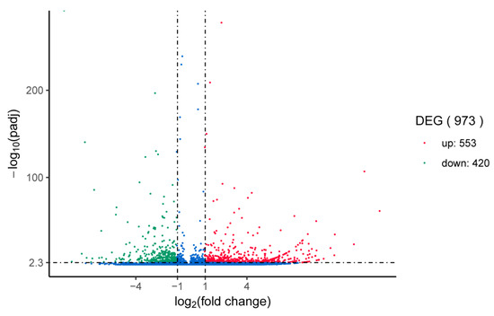 - Love, M.I.; Huber, W.; Anders, S. Moderated estimation of fold change and dispersion for RNA-seq data with DESeq. Genome Biol. 2014, 15, 550. [Google Scholar] [CrossRef]