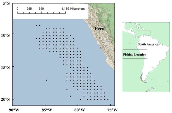 Zhang, T.; Xin, J.; Yu, W.; Yuan, H.; Song, L.; Yang, Z. Predicting the Fishery Ground of Jumbo Flying Squid (Dosidicus gigas) off Peru by Extracting Features of the Ocean Environment. Fishes 2024, 9, 81. https://doi.org/10.3390/fishes9030081