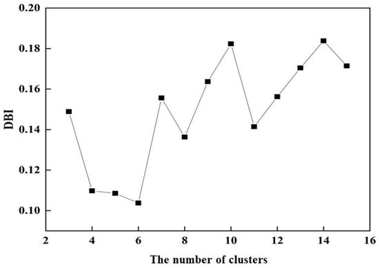 - The cluster number is set as n + 1, and the above steps (2) and (3) continue until DBI has reached the minimum value, and then the optimal number of clusters is determined.