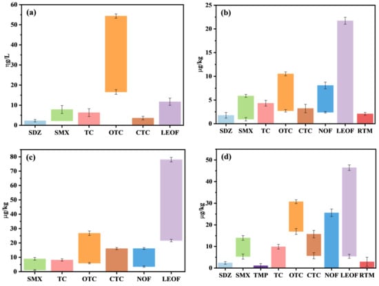 - Ahmed, M.B.M.; Abdel-Rahman, G.N.; Salem, S.H.; Fouzy, A.S.M. Incidence, stability and risk assessment for sulfonamides and tetracyclines in aqua-cultured Nile Tilapia fish of Egypt. Toxicol. Rep. 2020, 7, 836–843. [Google Scholar] [CrossRef]