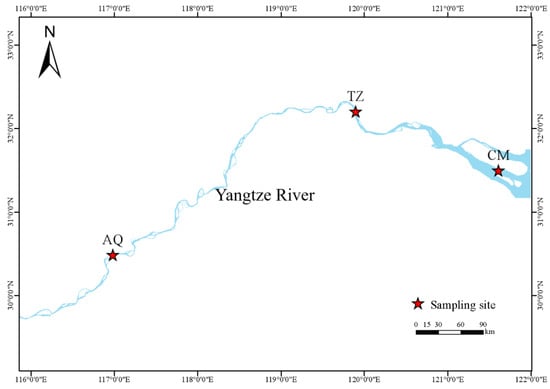 Sampling site of C. nasus in the Yangtze River. CM, Chongming; TZ, Taizhou; AQ, Anqing.