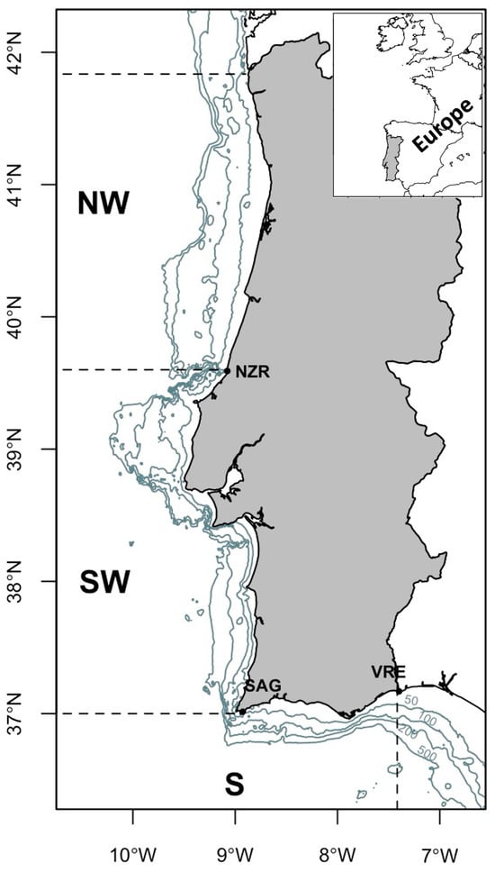 - Sousa, P.; Azevedo, M.; Gomes, M.C. Demersal assemblages off Portugal: Mapping, seasonal, and temporal patterns. Fish. Res. 2005, 75, 120–137. [Google Scholar] [CrossRef]