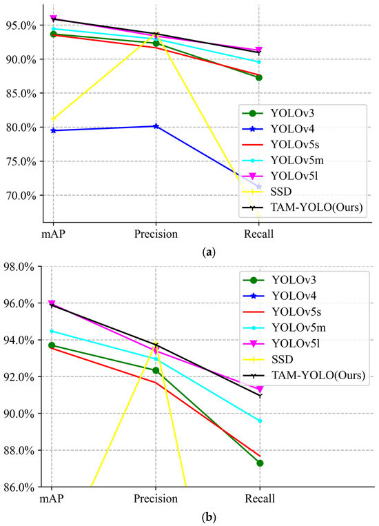 The performance comparison of different models. The results of TAM-YOLO are shown in bold, and the best results are underlined.
