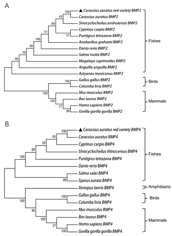 - Chen, L.; Dong, C.; Kong, S.; Zhang, J.; Li, X.; Xu, P. Genome wide identification, phylogeny, and expression of bone morphogenetic protein genes in tetraploidized common carp (Cyprinus carpio). Gene 2017, 627, 157–163. [Google Scholar] [CrossRef]