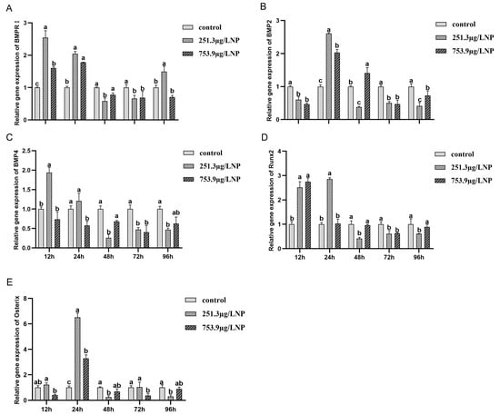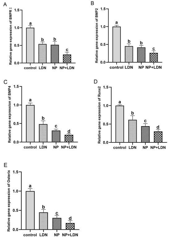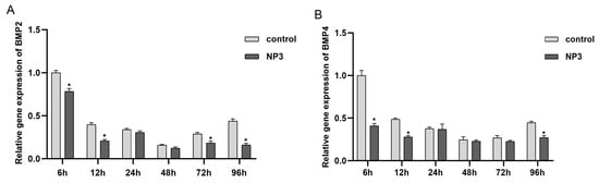 3.4. BMP2 and BMP4 Expression in Different Developmental Stages after NP Treatment