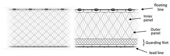 Scheme of traditional trammel nets (CN) and guarding nets (GN) modified from [].