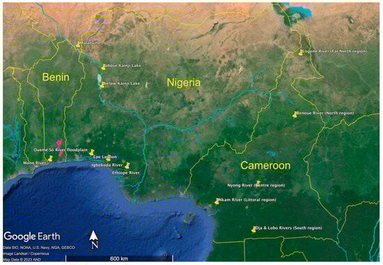 - Stauch, A. Le bassin Camerounais de la Benoue et sa Peche; IRD Editions; Office of Scientific and Technical Research Overseas (ORSTOM): Paris, France, 1966; pp. 1–152. Available online: https://horizon.documentation.ird.fr/exl-doc/pleins_textes/pleins_textes_2/memoires/10593.pdf (accessed on 18 May 2024).