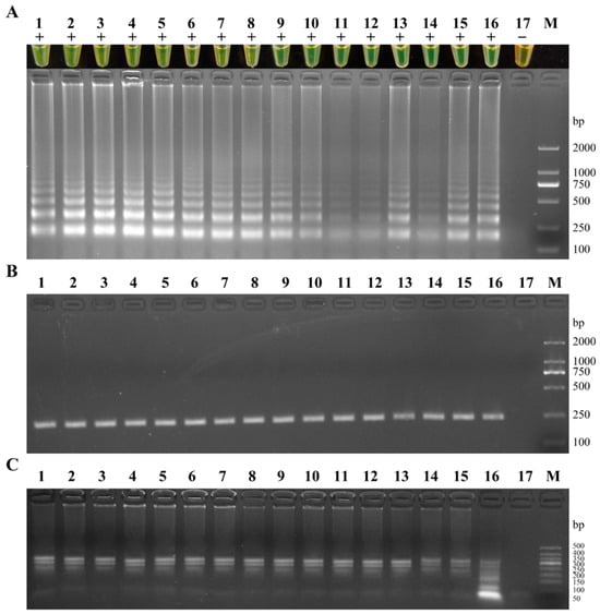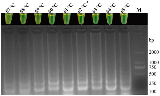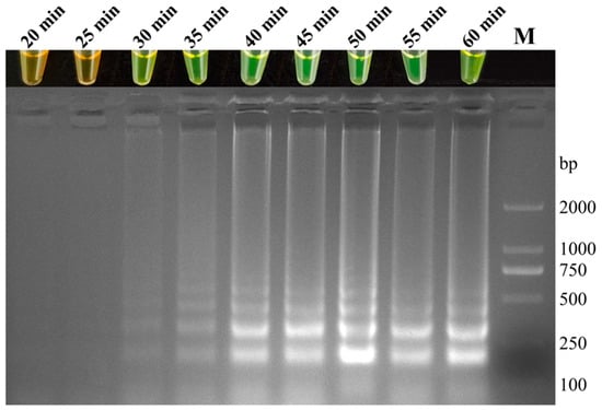 2.5. Optimization of Reaction Temperature and Time for the Triple LAMP