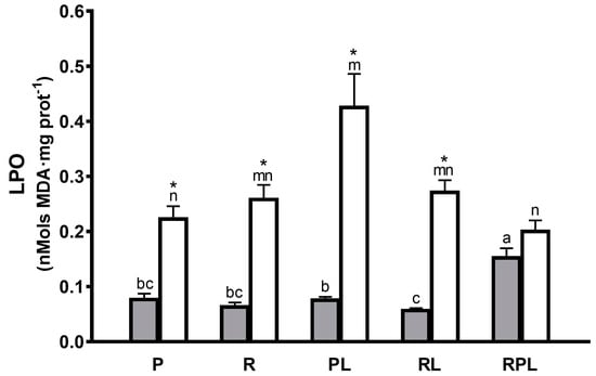 | RPL | 0.552 ± 0.05 n | 1.60 ± 0.12 mn * | 1.95 ± 0.14 m * | 1.70 ± 0.14 m * |