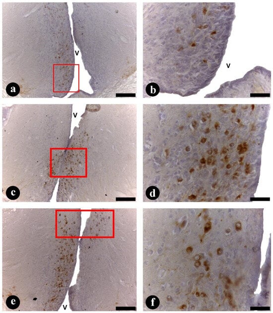 2.2.3. Single Immunohistochemistry of the Brain and Pituitary Gland