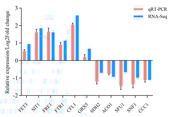 3.7. DEGs Involved in Iron Transport and Homeostasis