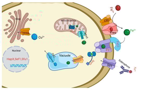 - Martínez-Pastor, M.T.; Puig, S. Adaptation to Iron Deficiency in Human Pathogenic Fungi. Biochim. Biophys. Acta (BBA) Mol. Cell Res. 2020, 1867, 118797. [Google Scholar] [CrossRef]