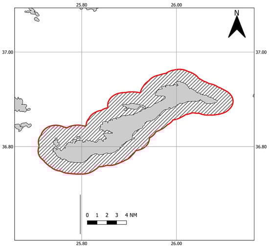 Map of the Amorgos Island, Central Aegean Sea, Greece. The red line marks the sampling area around Amorgos Island.