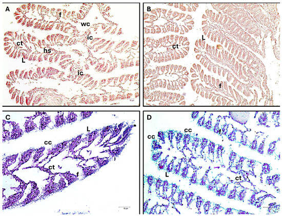 - Lauriano, E.R.; Alesci, A.; Aragona, M.; Pergolizzi, S.; Miller, A.; Zuwala, K.; Kuciel, M.; Zaccone, G.; Germanà, A.; Guerrera, M.C. Immunohistochemistry of the Gut-Associated Lymphoid Tissue (GALT) in African Bonytongue (Heterotis niloticus, Cuvier 1829). Int. J. Mol. Sci. 2023, 24, 2316. [Google Scholar] [CrossRef]