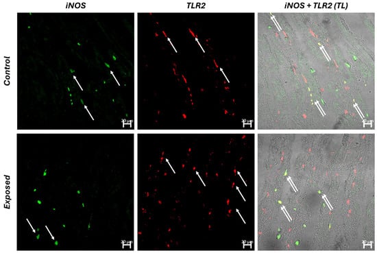 TLR2 + iNOS | 123.12 ± 48.37 ** | 141.64 ± 39.21 * |