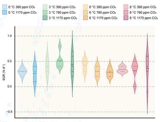 - Alter, K.; Jacquemont, J.; Claudet, J.; Lattuca, M.E.; Barrantes, M.E.; Marras, S.; Manríquez, P.H.; González, C.P.; Fernández, D.A.; Peck, M.A. Hidden impacts of ocean warming and acidification on biological responses of marine animals revealed through meta-analysis. Nat. Commun. 2024, 15, 2885. [Google Scholar] [CrossRef] [PubMed]