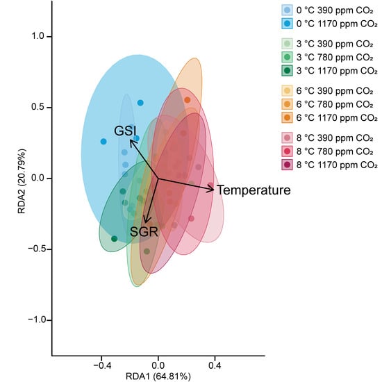 - Enzor, L.A.; Hunter, E.M.; Place, S.P. The effects of elevated temperature and ocean acidification on the metabolic pathways of notothenioid fish. Conserv. Physiol. 2017, 5, cox019. [Google Scholar] [CrossRef] [PubMed]