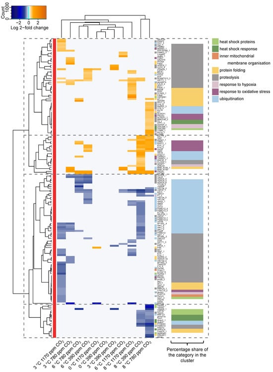 - Nuez-Ortín, W.G.; Carter, C.G.; Nichols, P.D.; Cooke, I.R.; Wilson, R. Liver proteome response of pre-harvest Atlantic salmon following exposure to elevated temperature. BMC Genom. 2018, 19, 1–13. [Google Scholar] [CrossRef] [PubMed]