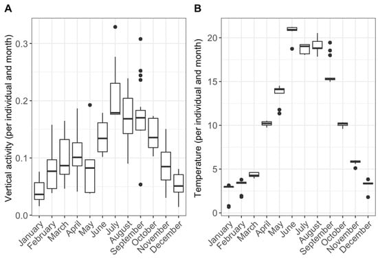 - Valdimarsson, S.K.; Metcalfe, N.B.; Thorpe, J.E.; Huntingford, F.A. Seasonal changes in sheltering: Effect of light and temperature on diel activity in juvenile salmon. Anim. Behav. 1997, 54, 1405–1412. [Google Scholar] [CrossRef][Green Version]