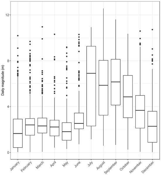 Chicago/Turabian StyleBergström, Kristofer, Hanna Berggren, Oscar Nordahl, Per Koch-Schmidt, Petter Tibblin, and Per Larsson. 2024. "Seasonal and Daily Movement Patterns by Wels Catfish (Silurus glanis) at the Northern Fringe of Its Distribution Range" Fishes 9, no. 7: 280. https://doi.org/10.3390/fishes9070280