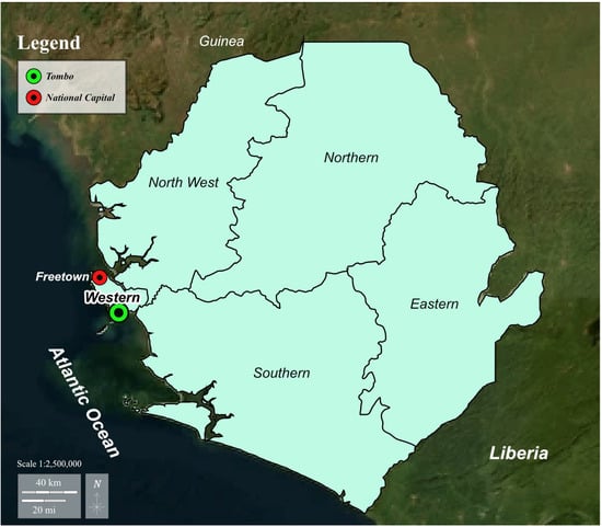 - Thorpe, A.; Whitmarsh, D.; Ndomahina, E.; Baio, A.; Kemokai, M.; Lebbie, T.A. Fisheries and Failing States: The Case of Sierra Leone. Mar. Policy 2009, 33, 393–400. [Google Scholar] [CrossRef]
