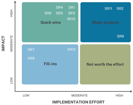 | Strategic Recommendation (SR) | Resources of Implementation | Time of Implementation | Implementation Effort |