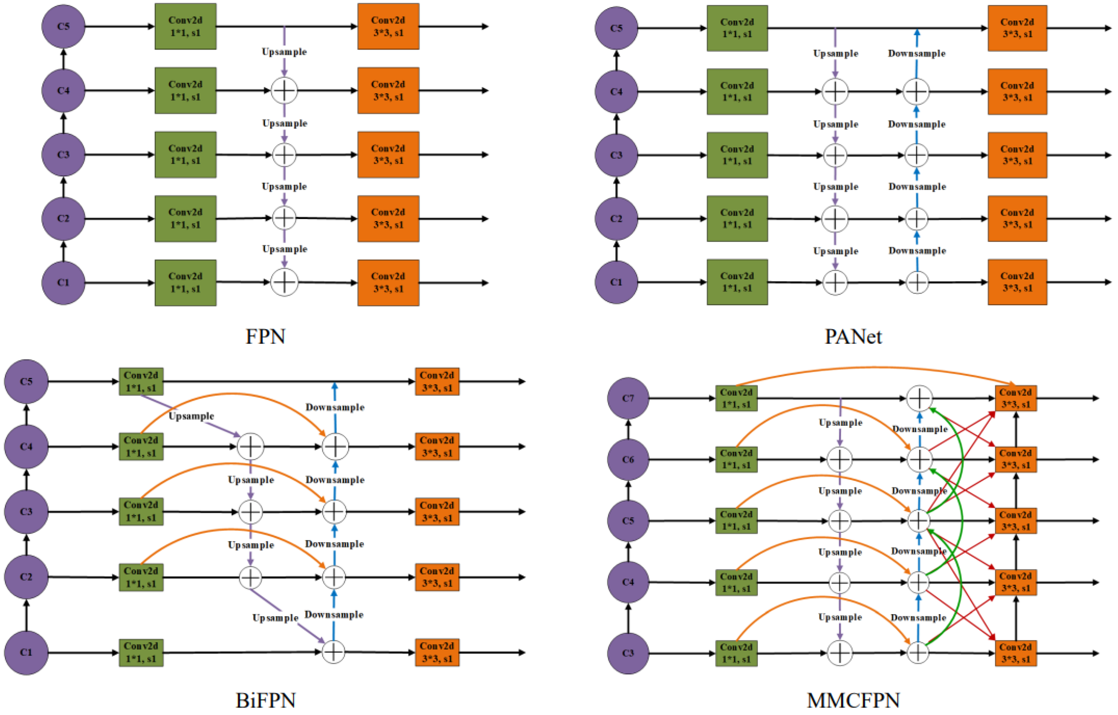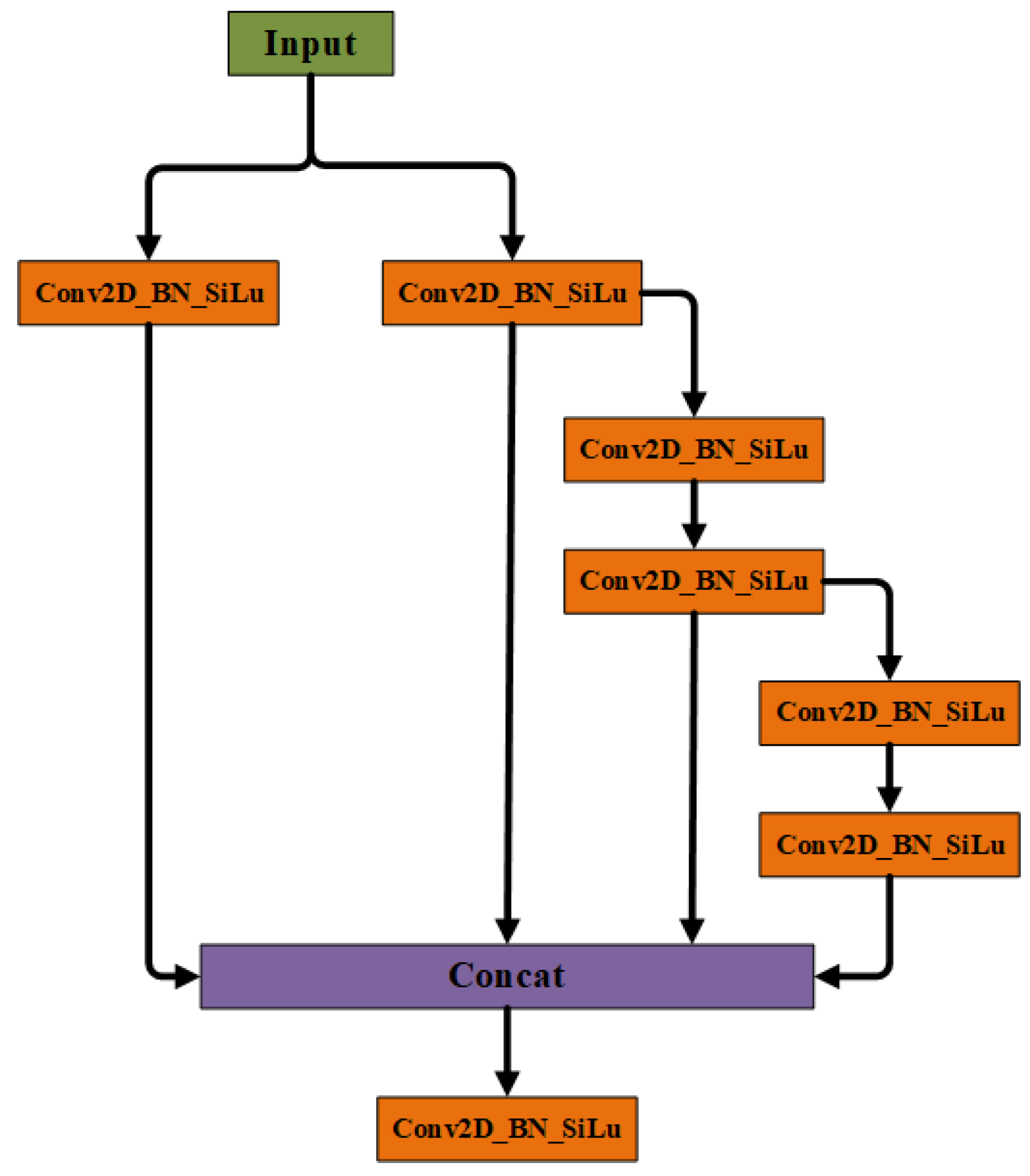 MCB (multiple convolution batch normalization) module to segment the depth features through splitting, and then obtain a new output through the convolution operation using the output on one side as the residual edge. The other side repeats the above work as a new input. After several splits, the final output is concat spliced to further obtain a unified output channel. At the same time, in the neck stage, a comparison of FPN [