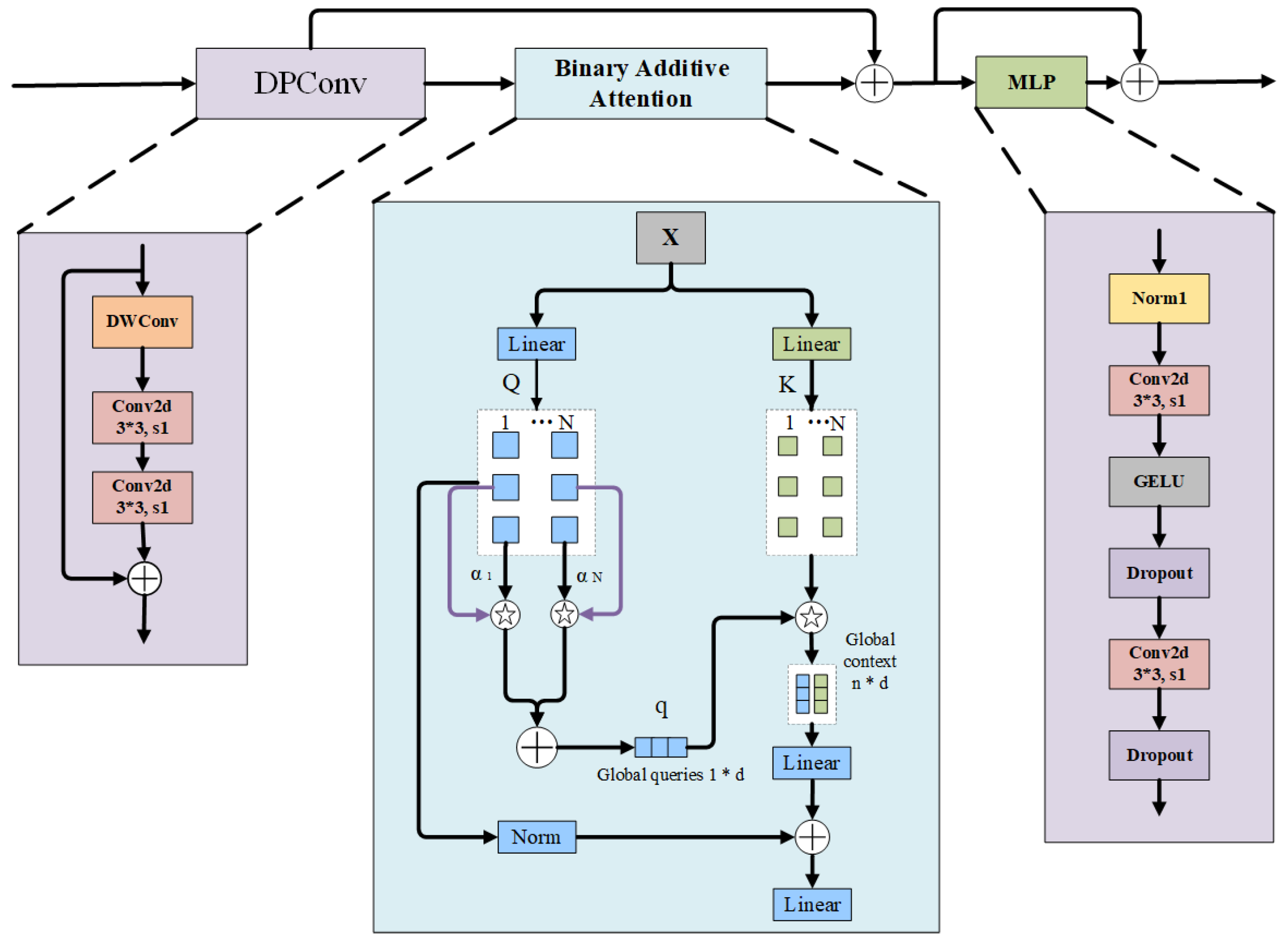 In the neck fusion process of the model, we introduce DBMFormer, a Q and K binary fusion attention mechanism, which further processes the fused features, strengthens the features, and thus improves the detection ability.