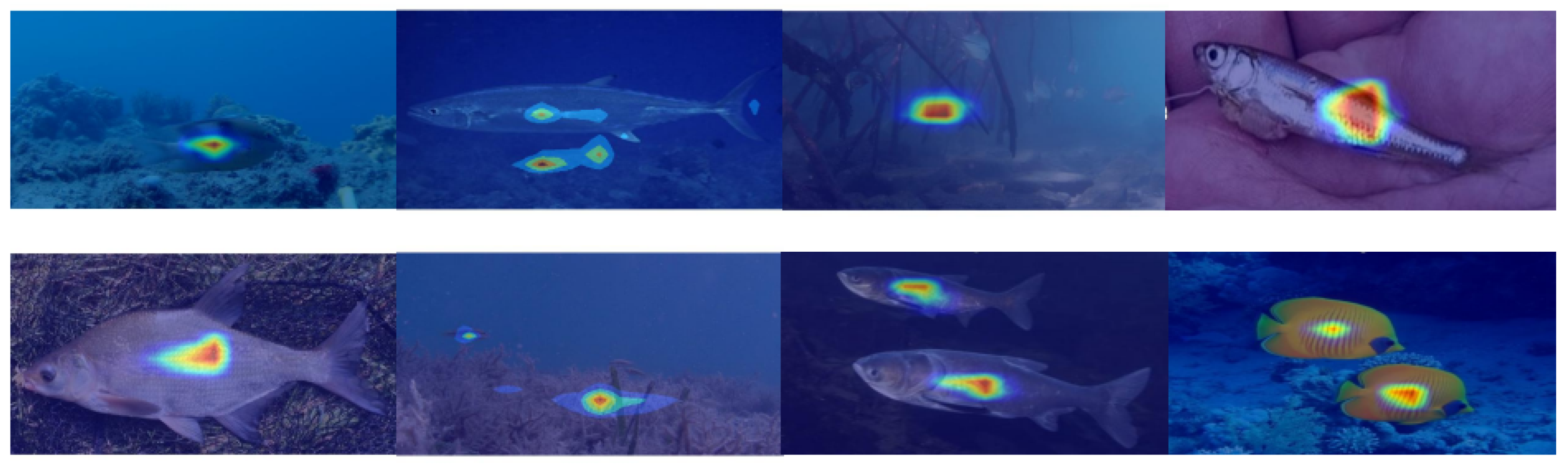 19] used a region-based convolutional neural network to detect freely moving fish in an unconstrained underwater environment. They used background subtraction and optical flow to make use of the fish movement information in the video, and then combined the results with the original images to generate corresponding candidate regions to further improve the effect of the model. Liu et al. [
