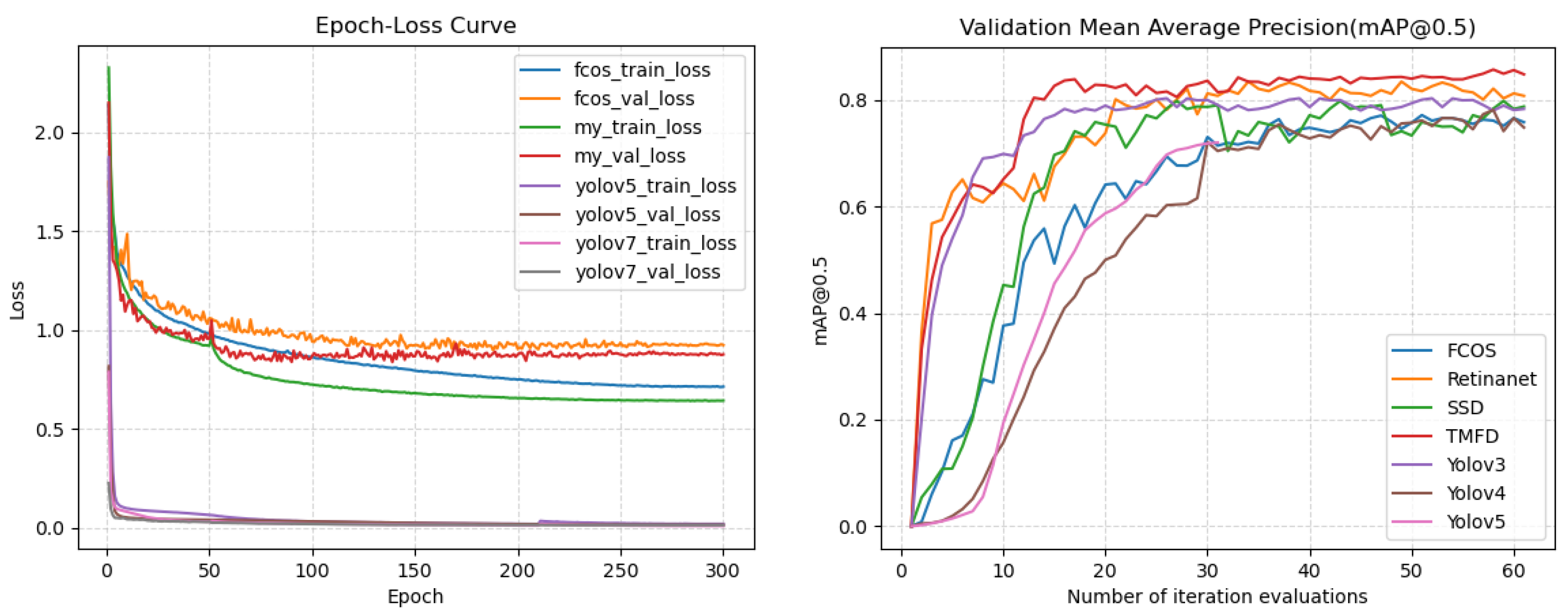 Table 1, it can be found that, compared with the traditional method with anchor points, our model has a better effect than other models when the proportion of data sets is unchanged. At the same time, through a series of innovative mechanisms, it achieves high precision target detection. Specifically, there are these points: