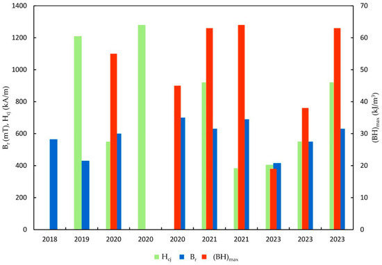 The summary diagram of the achieved main magnetic properties is presented in Figure 7, which shows the primary results.