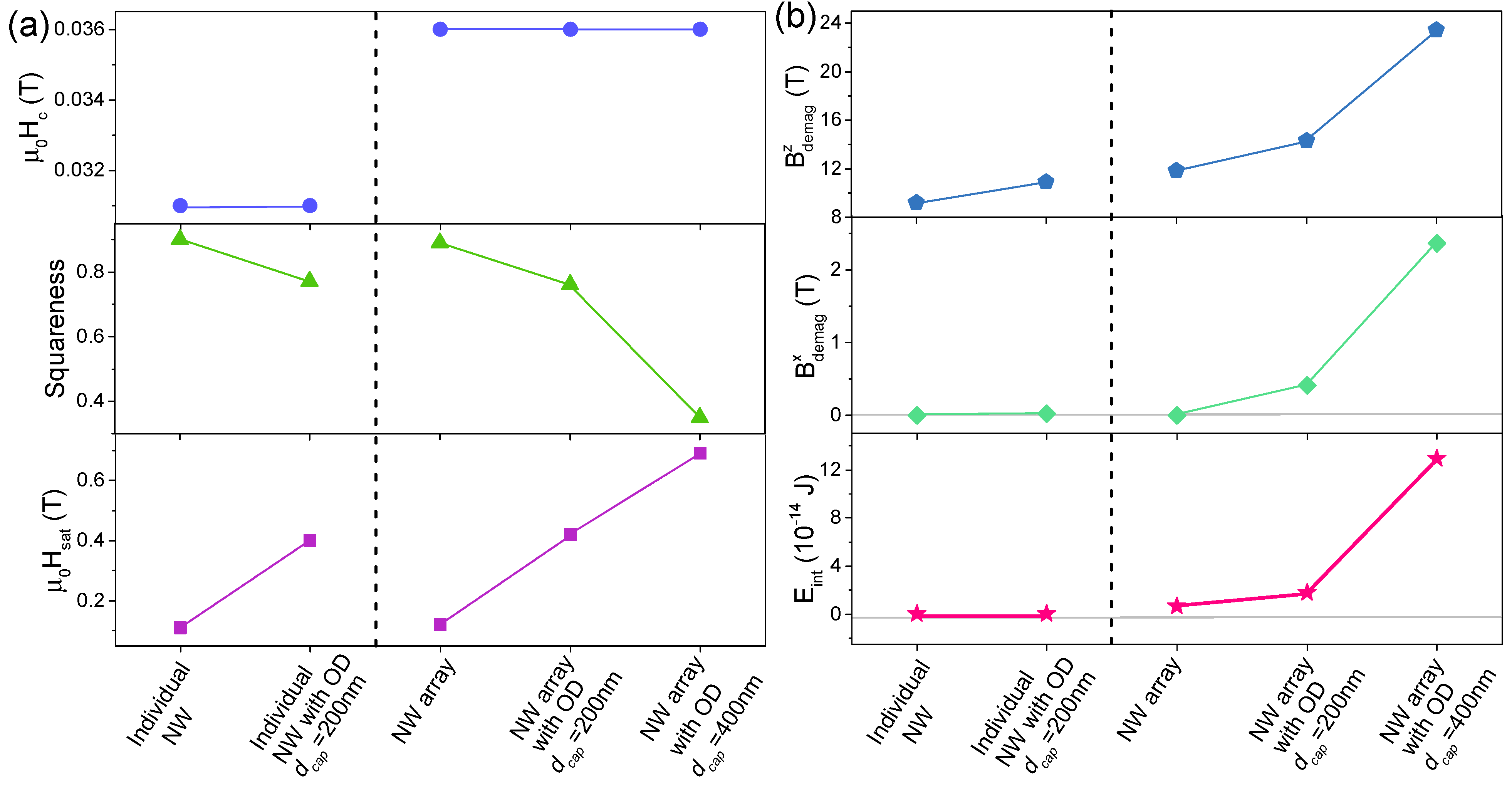 Figure 9b, the magnetostatic energy in nanowire arrays is relatively weak in the absence of OD, but increases substantially once OD is introduced.