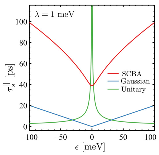 - Cummings, A.W.; Roche, S. Effects of dephasing on spin lifetime in ballistic spin-orbit materials. Phys. Rev. Lett. 2016, 116, 086602. [Google Scholar] [CrossRef] [PubMed]