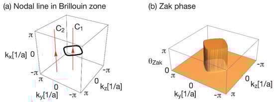 - Habe, T.; Asano, Y. Three-dimensional symmetry-breaking nontrivial topological states. Phys. Rev. B 2014, 89, 115203. [Google Scholar] [CrossRef]