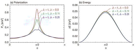 (a) The total polarization; and (b) the total energy as a function of the angle . We set , , and .