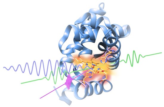 - Ferrante, C.; Pontecorvo, E.; Cerullo, G.; Vos, M.; Scopigno, T. Direct observation of subpicosecond vibrational dynamics in photoexcited myoglobin. Nat. Chem. 2016, 8, 1137. [Google Scholar] [CrossRef] [PubMed]