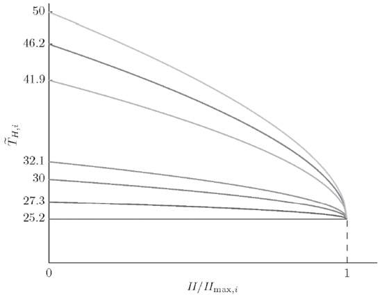 In particular, for , with the use of (26) we get: . Comparison of the dependence obtained with those derived within other approaches is given in Section 7.