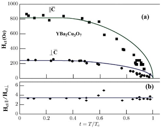 - Wu, D.H.; Sridhar, S. Pinning forces and lower critical fields in YBa2Cu3Oy crystals: Temperature dependence and anisotropy. Phys. Rev. Lett. 1990, 65, 2074. [Google Scholar] [CrossRef] [PubMed]