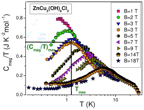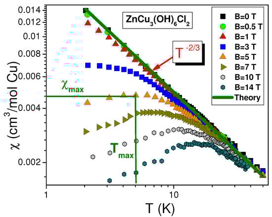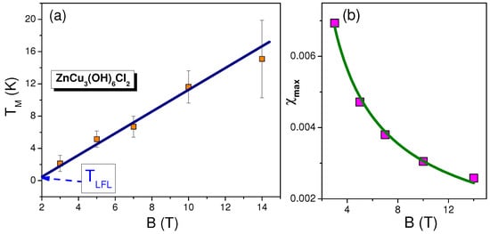 - Han, T.H.; Chisnell, R.; Bonnoit, C.J.; Freedman, D.E.; Zapf, V.S.; Harrison, N.; Nocera, D.G.; Takano, Y.; Lee, Y.S. Thermodynamic Properties of the Quantum Spin Liquid Candidate ZnCu3(OH)6Cl2 in High Magnetic Fields. arXiv 2014, arXiv:1402.2693. [Google Scholar]