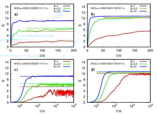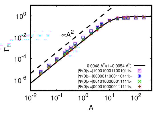 In the following, we mostly concentrate on values A 10 such that the effect of the increase of the spectral width σ ( A ) is still small or at least quite moderate. The question arises if a given many-body state, either an exact eigenstate of H or a state obtained from a time evolution with respect to H, is thermalized according to the Fermi–Dirac distribution [47]. As in [45,46], we determine the occupation numbers n k = c k c k for such a state, as well as the corresponding fermion entropy S [47] and the effective total one-particle energy E 1 p by: