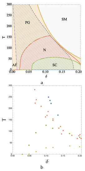 52]. It crosses the superconducting dome as advocated in many approaches based on the existence of a critical point (see, e.g., Reference [