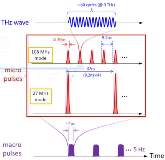 - Kawase, K.; Nagai, M.; Furukawa, K.; Fujimoto, M.; Kato, R.; Honda, Y.; Isoyama, G. Extremely high-intensity operation of a THz free-electron laser using an electron beam with a higher bunch charge. Nucl. Instrum. Meth. A 2020, 960, 163582. [Google Scholar] [CrossRef]