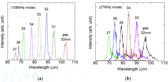 - Okuda, S.; Honda, Y.; Kimura, N.; Ohkuma, J.; Yamamoto, T.; Suemine, S.; Okada, T.; Ishida, S.; Takeda, S.; Tsumori, K.; et al. Free-electron laser oscillation with a multibunch electron beam of the 38 MeV L-band linear accelerator at ISIR. Nucl. Instrum. Meth. A 1995, 358, 244–247. [Google Scholar] [CrossRef]