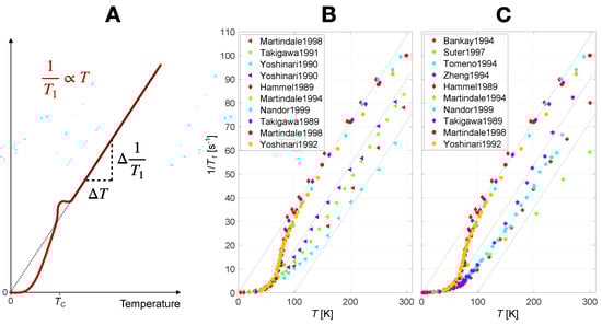 - Martindale, J.A.; Barrett, S.E.; Durand, D.J.; O’Hara, K.E.; Slichter, C.P.; Lee, W.C.; Ginsberg, D.M. Nuclear-spin-lattice relaxation-rate measurements in YBa2Cu3O7. Phys. Rev. B 1994, 50, 13645–13652. [Google Scholar] [CrossRef]