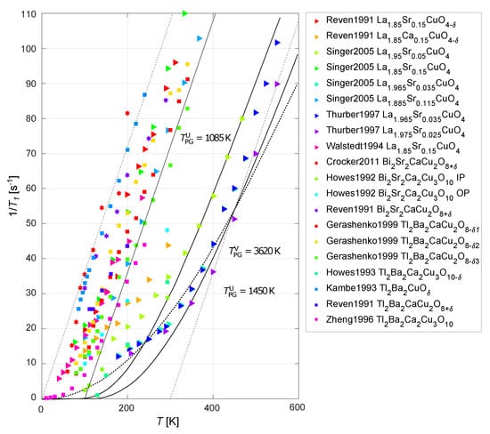 - Jurkutat, M.; Avramovska, M.; Williams, G.V.M.; Dernbach, D.; Pavićević, D.; Haase, J. Phenomenology of 63Cu Nuclear Relaxation in Cuprate Superconductors. J. Supercond. Nov. Magn. 2019, 32, 3369–3376. [Google Scholar] [CrossRef]